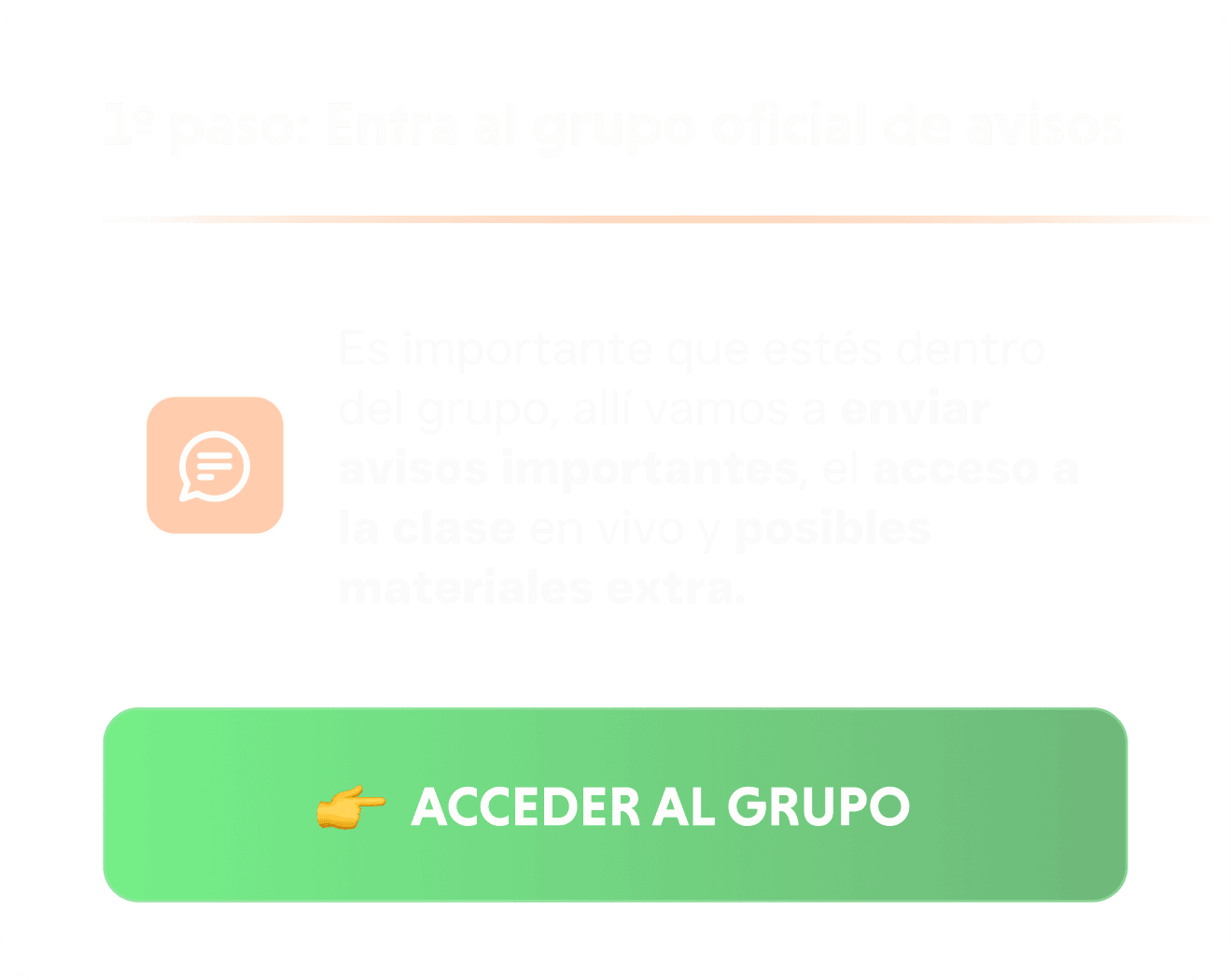 Es importante que estés dentro del grupo, allí vamos a enviar avisos importantes, el acceso a la clase en vivo y posibles materiales extra.