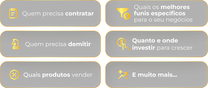 Clareza total sobre o que fazer, quem contratar e o que cortar.