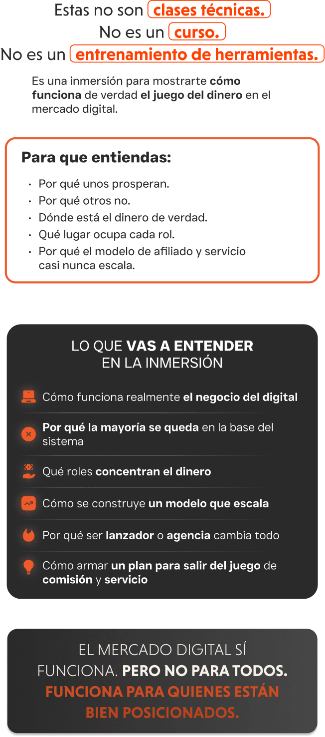 Es una inmersión para mostrarte cómo funciona de verdad el juego del dinero en el mercado digital.